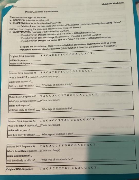 Solved Mutations Worksheet Me Deletion Insertion Chegg Com from media.cheggcdn.com Use this punnett square cheat sheet to help . Comments and help with gene mutation worksheet answer key. If a point mutation changes the amino acid, it's called a missense mutation. And then it gets confusing. This section describes and compares gene mutations and chromosomal mutations. Mutations may lead to genetic disorders. Which of these would most likely cause this mutation? Will there likely be effects?